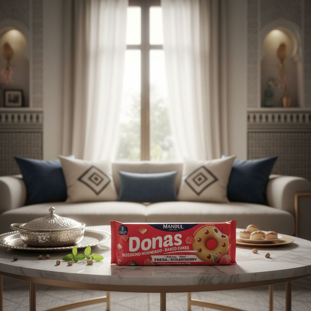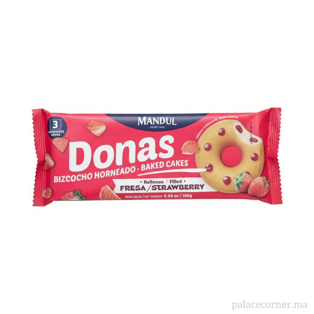 Étiquettes : Biscuits premium, Donas, Épicerie Sucrée, Fraise, Goûter, Mandul, Pâtisserie espagnole
